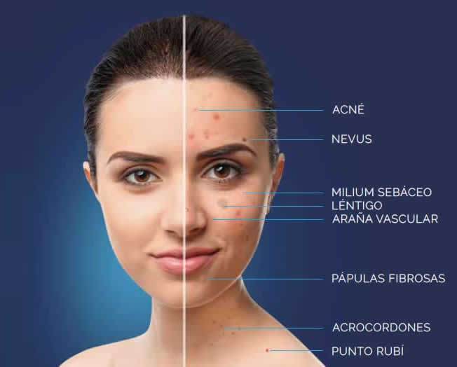 Las pequeñas imperfecciones de la piel, como manchas, verrugas, puntos rubí, arañas vasculares, etc que pueden afectar la apariencia del rostro y el cuerpo.